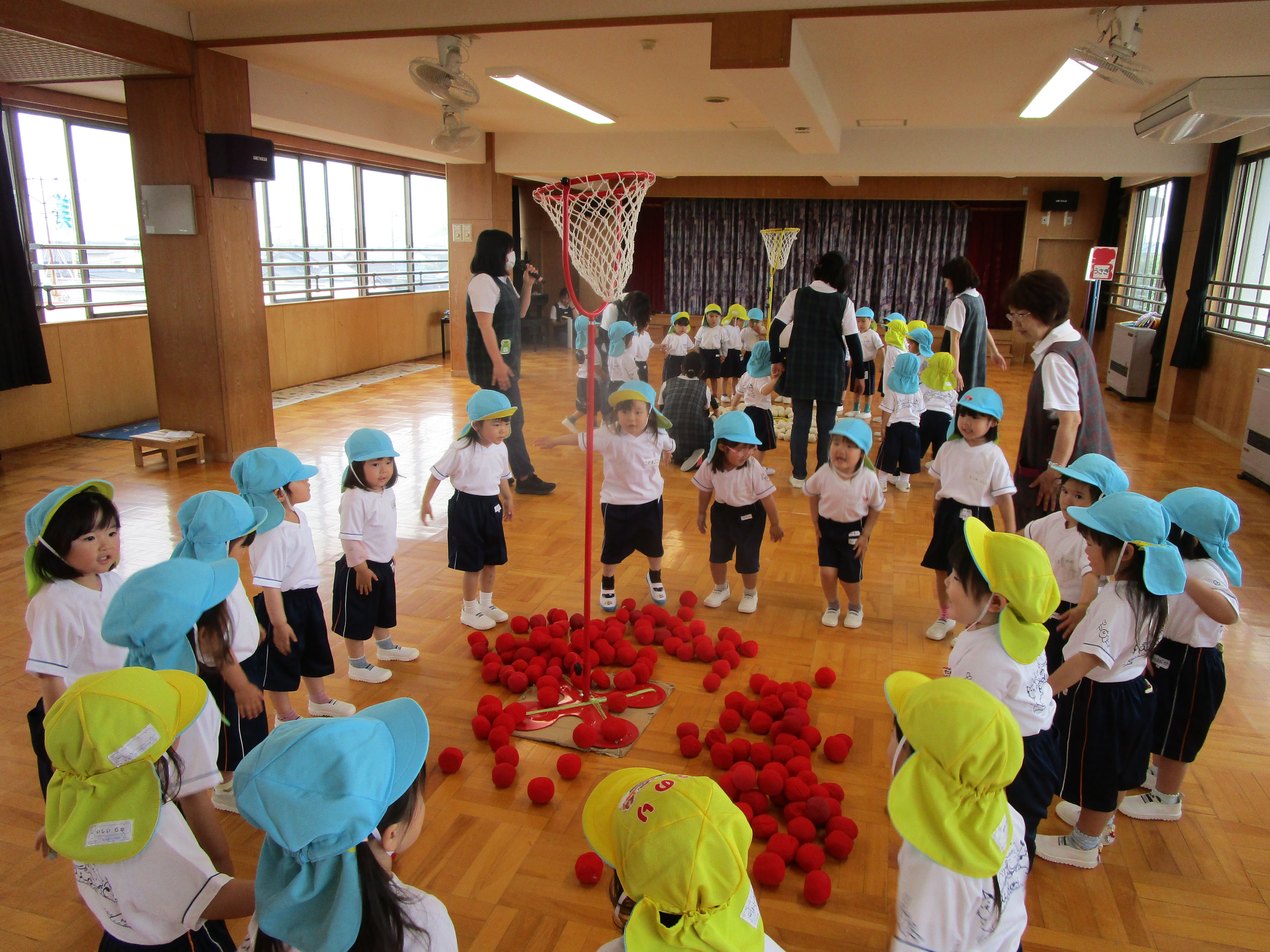 みんなで一生懸命、玉を投げました!